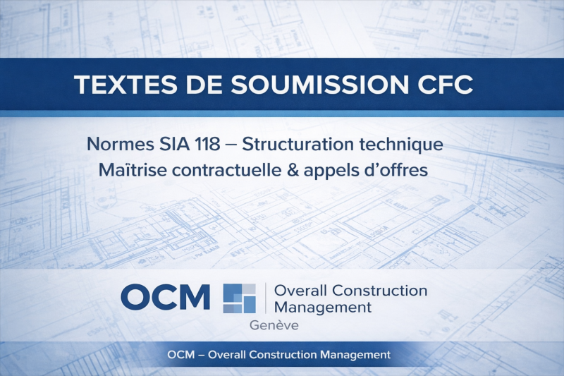 Chez OCM, nous rédigeons des pièces techniques structurées, précises et conformes aux normes suisses (SIA / CAN / CFC).